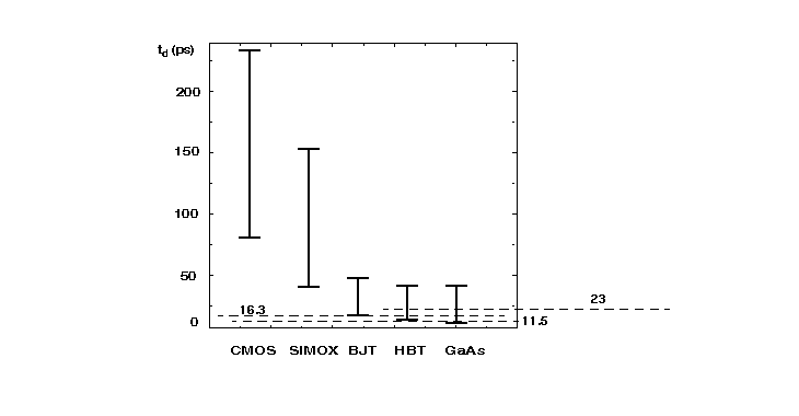 ECL gate delay 23 ps with standard technology